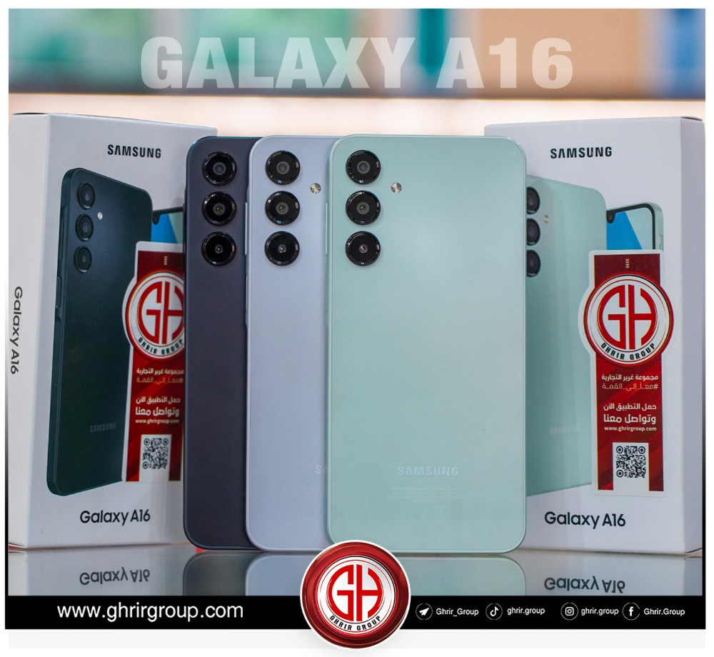سعر مخفض -تصميم أنيق-أداء جيد ✨Samsung Galaxy A16 ▫️شاشة Super AMOLED 6.7 إنش، ألوان تخليك تعيش التفاصيل كأنها حقيقية! ▫️كاميرا 50MP، صور أوضح من الواقع! ▫️بطارية 5000mAh، ما بتخلص.. ومع الشحن السريع، ما في وقت للانتظار! ▫️معالج سريع وأداء سلس، لا تقطيع، لا تعليق، بس تجربة انسيابية! ▫️تصميم أنيق ومتين، مقاوم للماء والغبار، وبيواكب ستايلك.