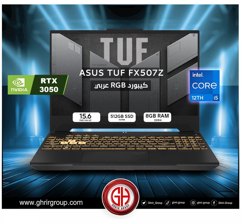 احصل على الجهاز الأقوى والأحدث TUF FX507Z من العملاقة #Asus بمواصفات جبارة لجميع أنواع الألعاب الحديثة والأعمال عالية الاحترافية بشكل مثالي وإضاءة رائعة .. إنه اللابتوب المثالي لكل شيء ! يأتي بالمواصفات التالية :معالج : Intel Core i5-12500Hكرت الشاشة : NVIDIA RTX3050 4GB تخزين : NVME SSD 512شاشة :FHD 15.6 144 HZالرام : 8GB DDR4كيبورد: RGB عربي بإمكانكم طلب المنتج عبر التطبيق 👨💻مع خدمة التوصيل المجاني