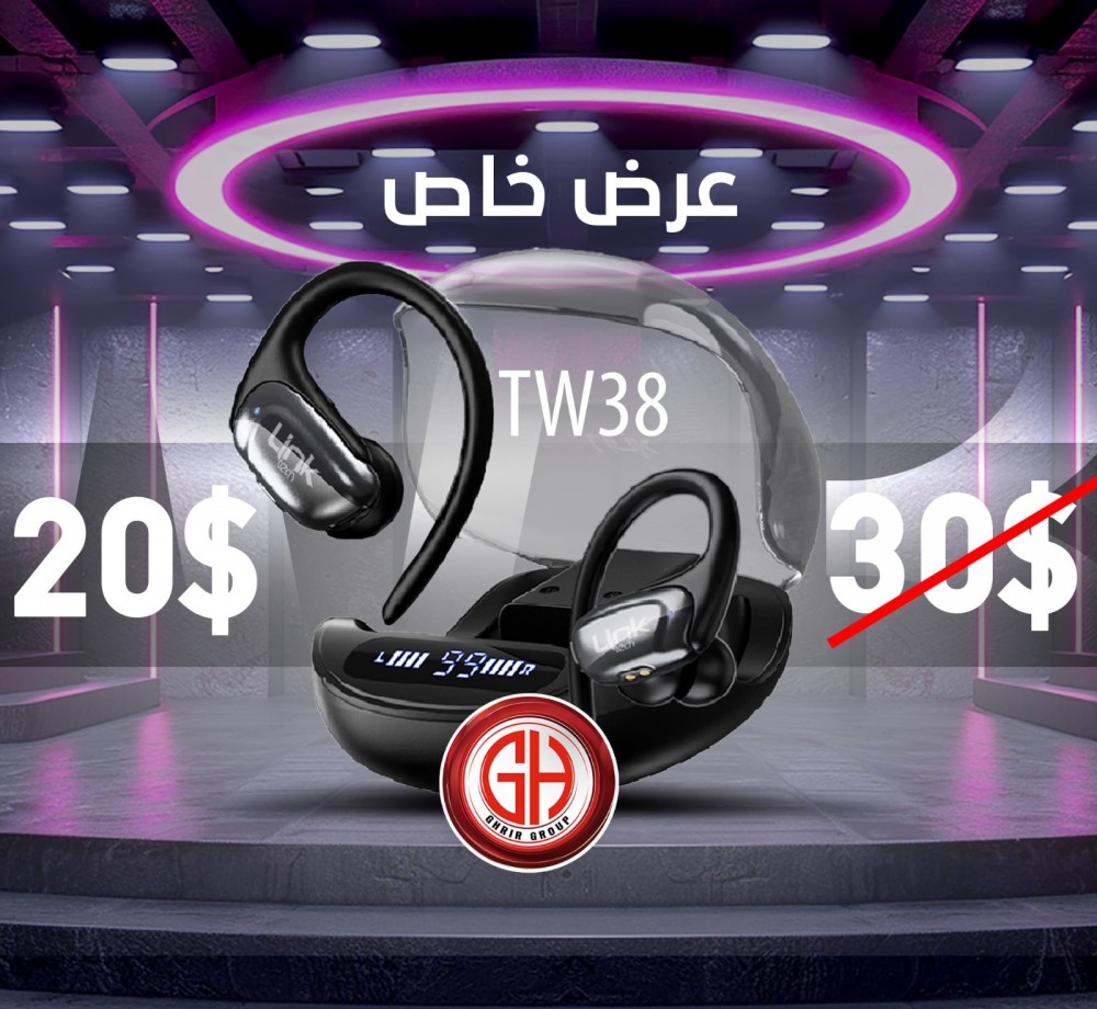 سماعة بلوثوث TW38 من ماركة Link 👈 مواصفات السماعة : ✅ تصميم أنيق جداً🤩✅ صوت ستيريو ونقي بتقنية 9D✅ ضد الرطوبة✅ صوت المايك ديجيتال واضح جداً اثناء الاتصال✅ تعمل السماعة لمدة 20 ساعة✅ تعمل مع انظمة Windows و IOS و Android✅أحدث إصدار بلوتوث 5.3✅ تعمل على بعد 10 متر عن الهاتف بإمكانك الحصول عليه من قسم العروض
