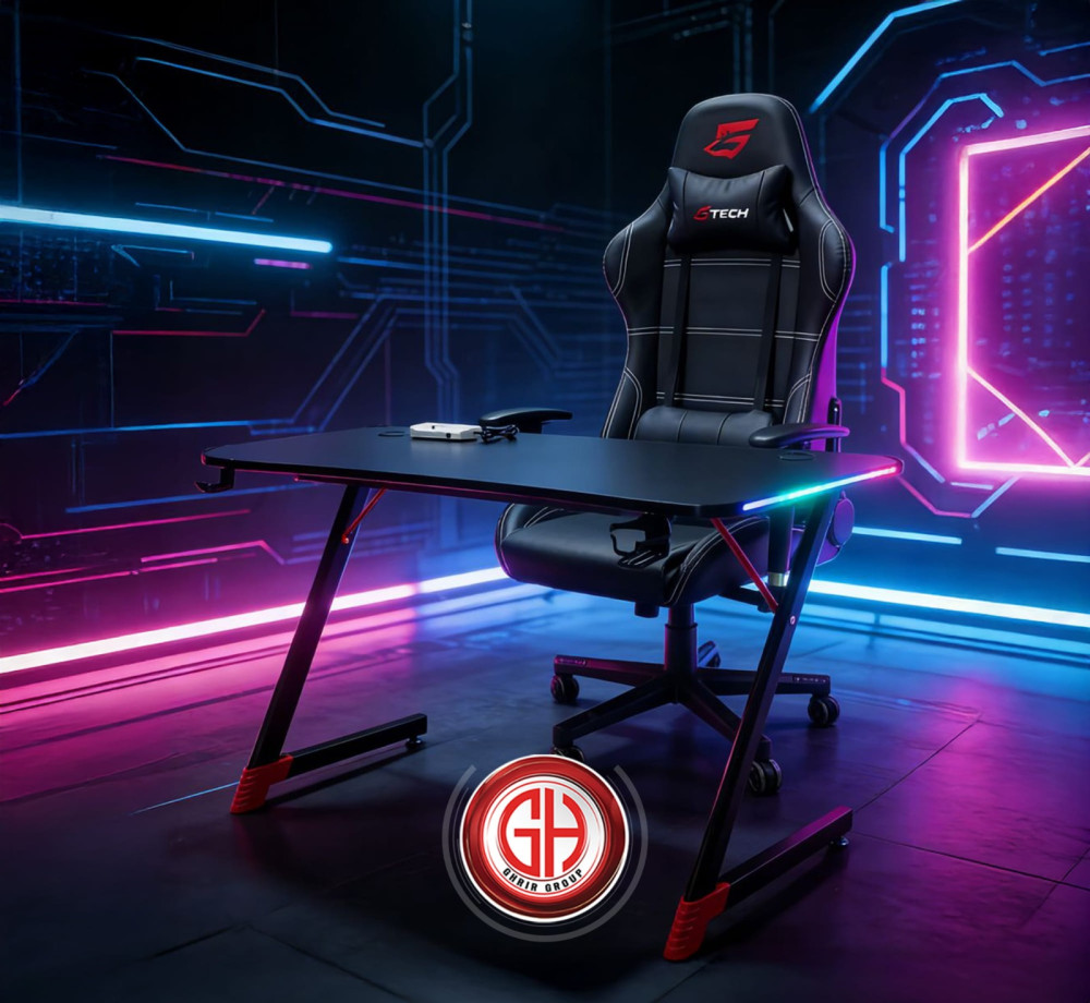طاولة ألعاب غيمينغ RGB – GTECHالمواصفات: • الطول: 120 سم • العرض: 60 سم • الارتفاع: 74 سم • سماكة سطح الطاولة: 15 مم • إضاءة RGB مدمجة بتصميم عصري • سطح متين وثابت مناسب للألعاب والاستخدام المكتبي • تصميم غيمينغ احترافي يوفر راحة وثبات أثناء اللعب • مناسبة للكمبيوتر، اللابتوب، وإعدادات البث (Streaming)GTECH – أداء، تصميم، وأناقة في قطعة واحدة