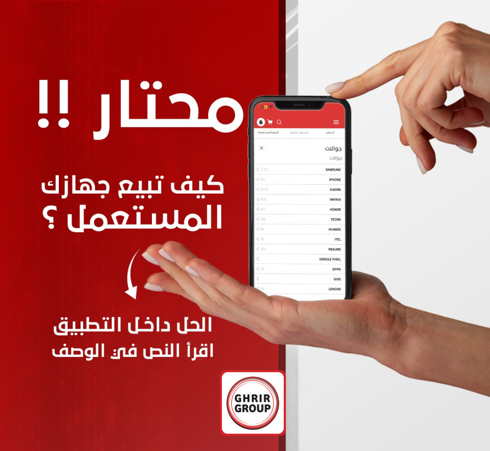 ماعاد في داعي تتعذب وتلف كتير حتى تبيع موبايلك المستعمل جهزنا لك بيئة اعلانية مناسبة داخل تطبيق غرير اتبع الخطوات البسيطة التالية 👇1 : افتح تطبيق غرير 2 : ادخل على المتجر ثم اختر قسم الأجهزة المستعملة3 : اضغط على “أضف إعلان”4 : حدد نوع موبايلك ومواصفاته (الموديل، الحالة، السعة، اللون…)5 : أضف عدة صور واضحة 📸6 : اضغط على “نشر” ✅وخلص ! إعلانك صار جاهز والمهتمين رح يتواصلو معك خلال وقت قصير